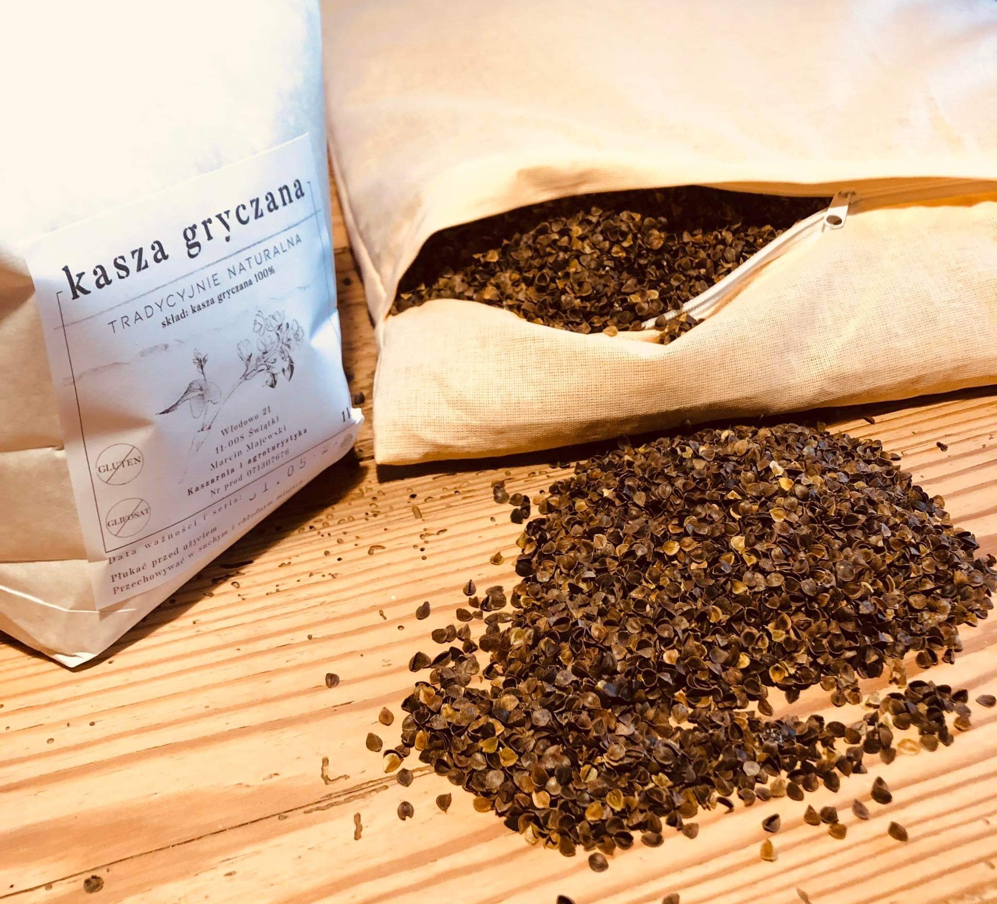 Kimka – naturalna łuska gryczana do spania z naszego ekologicznego gospodarstwa. Łuska powstaje podczas procesu produkcji kaszy oraz mąki i pochodzi w 100% z naszych upraw. Produkt uprawiany jest ekologicznie, nie pryskany, nie obrabiany chemicznie co w przypadku zastosowania łuski jako wypełnienia do poduszek odgrywa kluczową rolę.